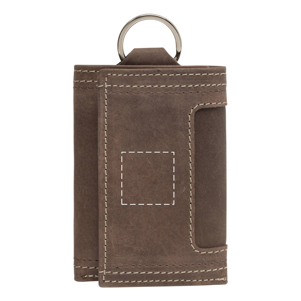 Lederen sluiteletui WILD STYLE III; 1 ring, 6 hangers, 4 insteekvakken voor pasjes of visitekaarten en een vak voor briefgeld. Sluiting dmv 2 drukknoppen.